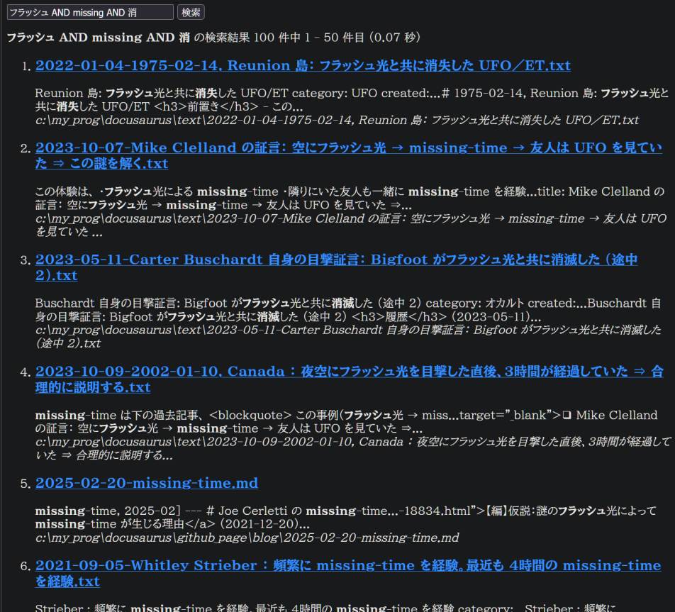 本 Blog では記事が累積し、非公開の内部 資料/記事 も含めると既に文書総数が数万件になっている。さらに 記事/文書 は複数のサイト(+local) に跨っている。加えて個々の記事は比較的長く、文字起こしを含む場合は 200KiB を超えるものも少なくない。ちなみに文庫本一冊に含まれる文章の情報量は 200~300 KiB 程度。