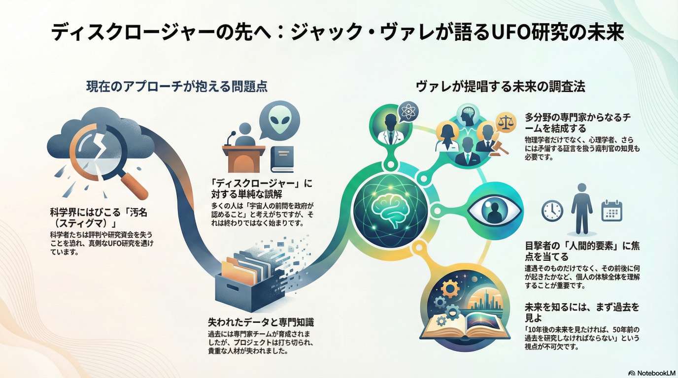 最終的に、真の「ディスクロージャー(情報開示)」とは単なる事実の公表ではなく、私たちの時空概念や宇宙観を根底から変える新たな探究の始まりであると結論付けています。