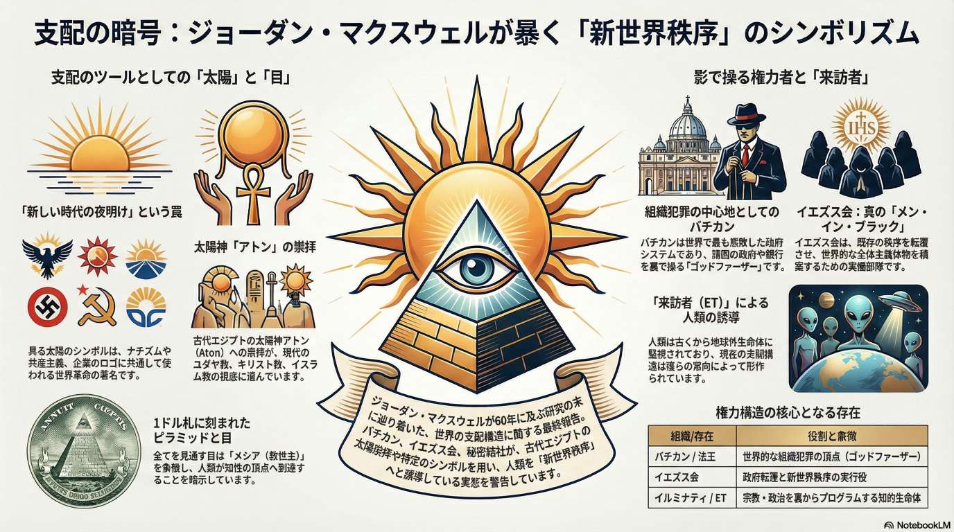 このテキストは、研究家 Jordan Maxwell 氏が自身の活動の集大成として語った秘密結社、宗教、および宇宙文明に関する講演内容をまとめたものです。