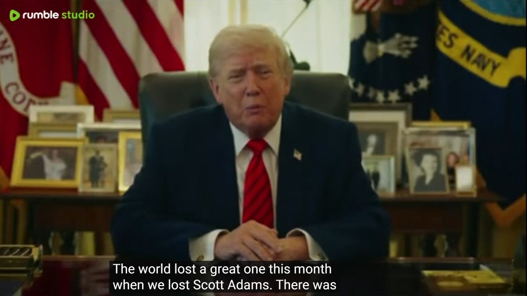 15:20--16:50 には Trump 大統領(NotebookLM は元・大統領だと誤認している)が Scott Adams の死を悼む動画メッセージを再生している。