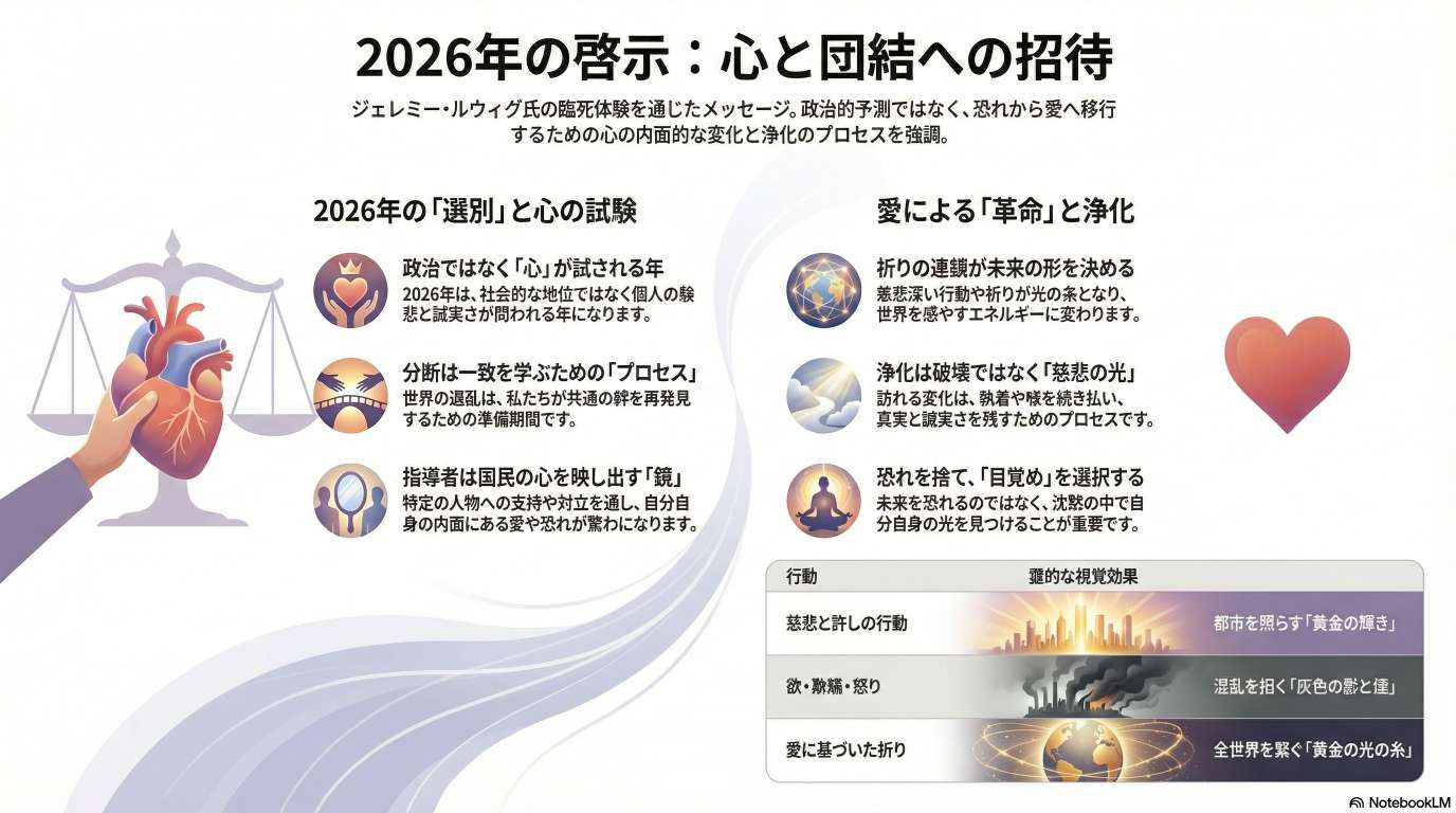 - 臨死体験に基づく2026年の展望と霊的洞察:ジェレミー・ルウィグの証言に関するブリーフィング・ドキュメント