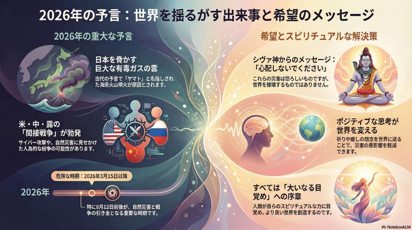 特に、かつて「ヤマト」と呼ばれた日本が海底火山の噴火や有毒ガスの影響を受ける可能性を指摘し、それが単なる自然災害ではなく間接的な戦争の一環である可能性も示唆しています。