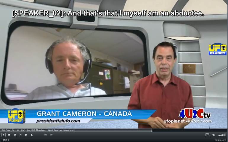 この動画の最大の見どころは、Darin Crapo が番組の終わりごろに突然、「自分は ET に abduction された経験がある」と告白したシーン(上)。Cameron が情熱を込めて語る abductee の崇高な使命(= ET の人類救済計画のサポート役として願って地球人に転生)のオハナシに感銘し、Crapo も自分の使命を自覚し告白に至った。